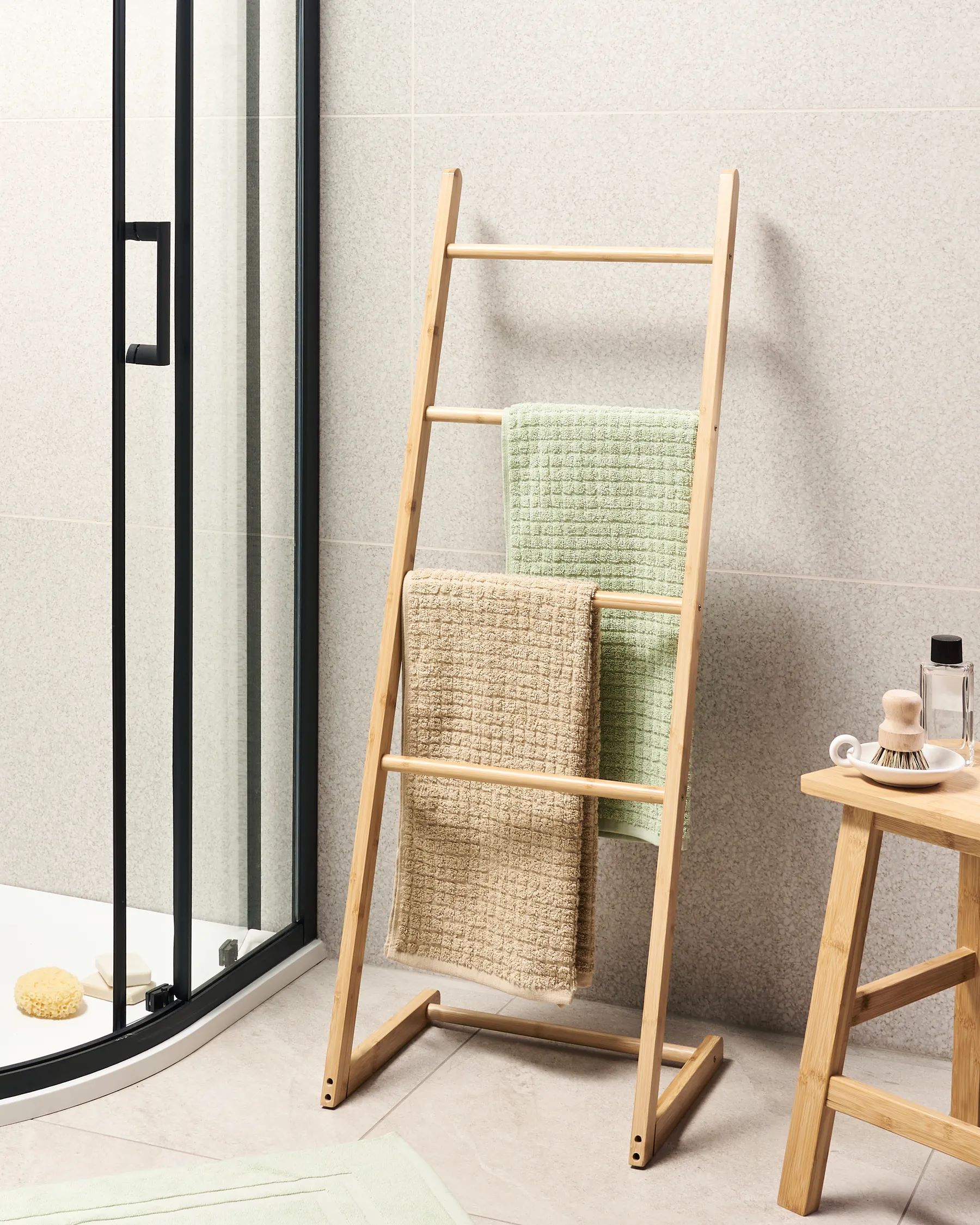 - Colour contrast: Pair natural bamboo ladder racks with colourful towels for a really striking contrast.