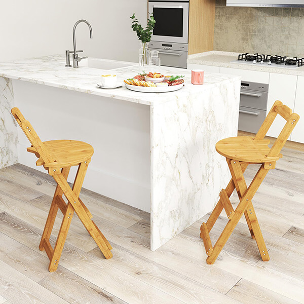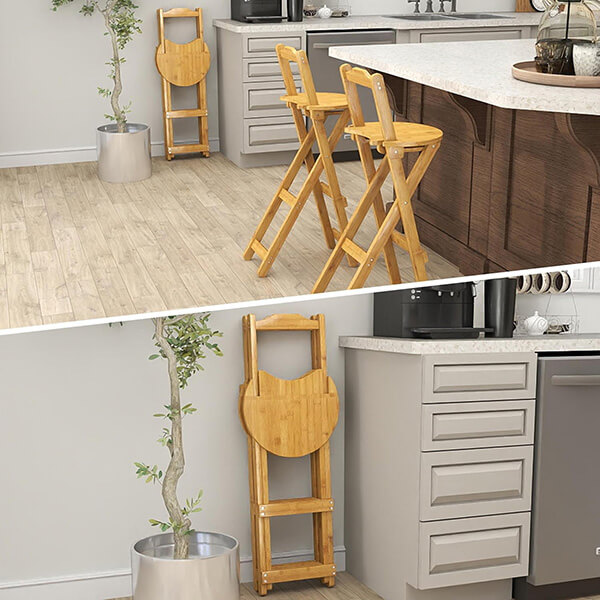 The stools can be folded flat to save space, easy to store when not in use, perfect for small spaces