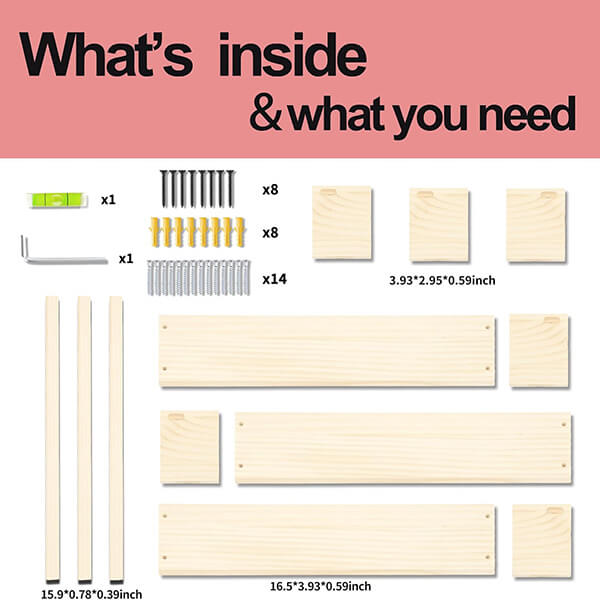 Installation is simple — each set includes all the necessary mounting hardware, so you can hang them up quickly and securely. Once installed, they provide a strong, stable platform for both decorative and everyday use.