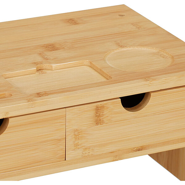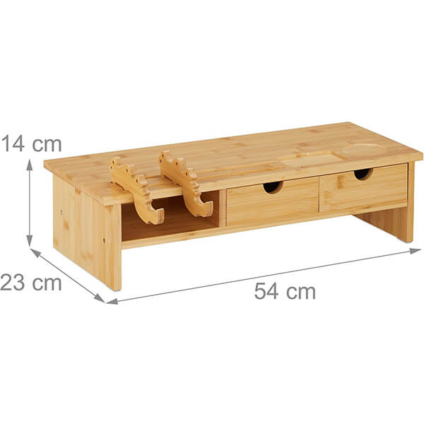 Upgrade your workstation with our Bamboo Monitor Stand with Storage, designed to combine ergonomic comfort with smart organization. Crafted from natural bamboo, this elegant screen riser elevates your monitor to eye level, promoting better posture and reducing neck and shoulder strain during long hours of work.