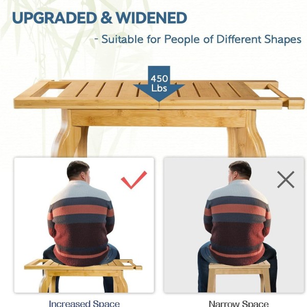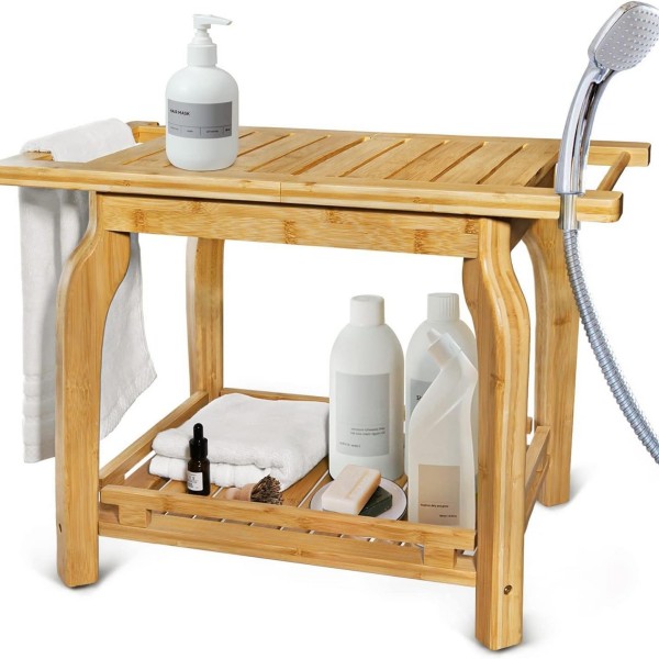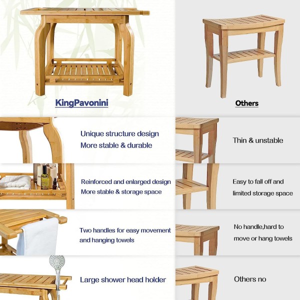 The two-tier structure also provides additional storage space underneath the seat, allowing users to place towels, shower accessories, or daily bathroom items.